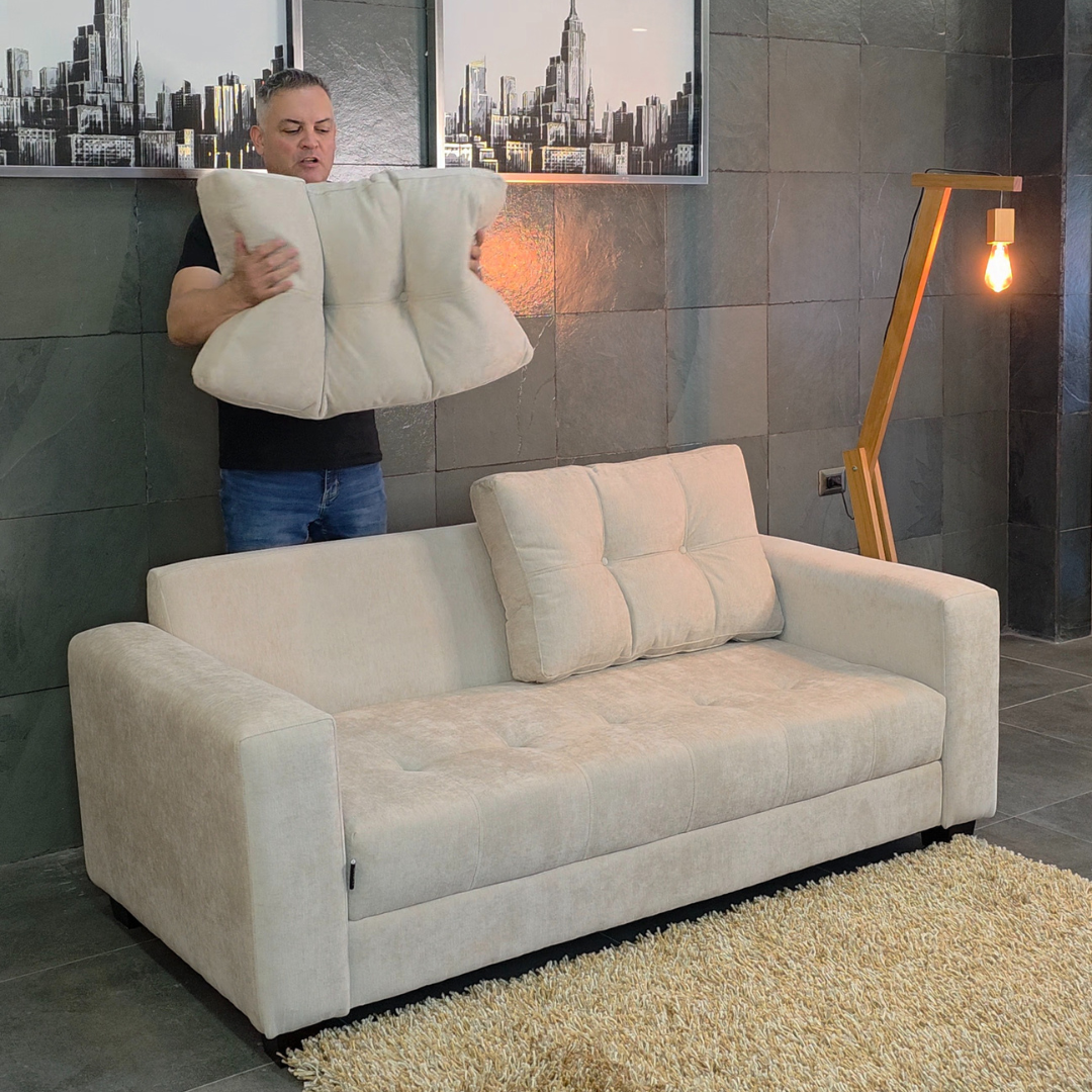 El Sofá Lisboa combina diseño limpio con una comodidad pensada para el uso diario. Con 180 cm de largo y 85 cm de profundidad, es ideal para espacios modernos: se ve elegante, no recarga el ambiente y se siente cómodo desde el primer momento.
